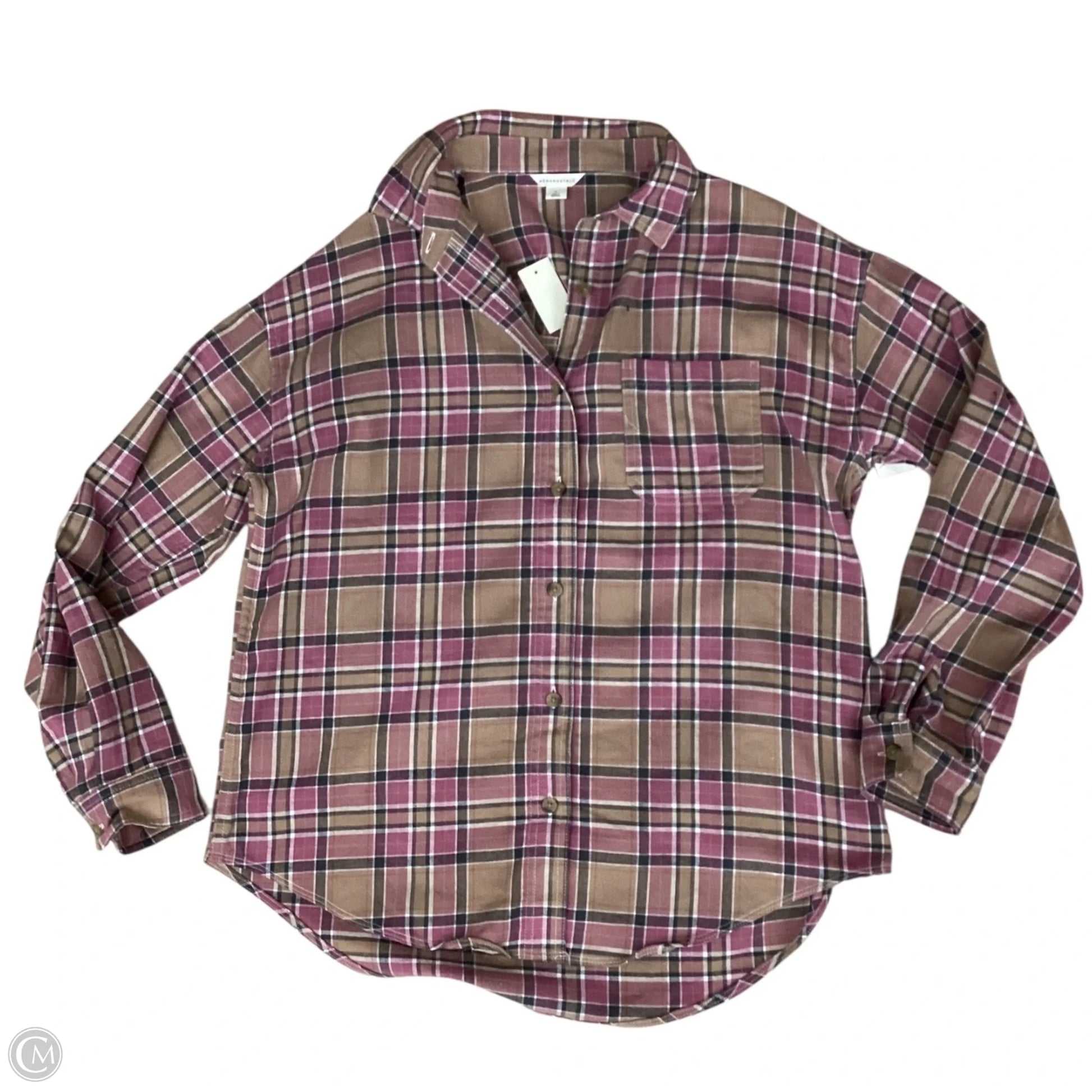 Blouse Long Sleeve By Aeropostale In Plaid Pattern, Size: S