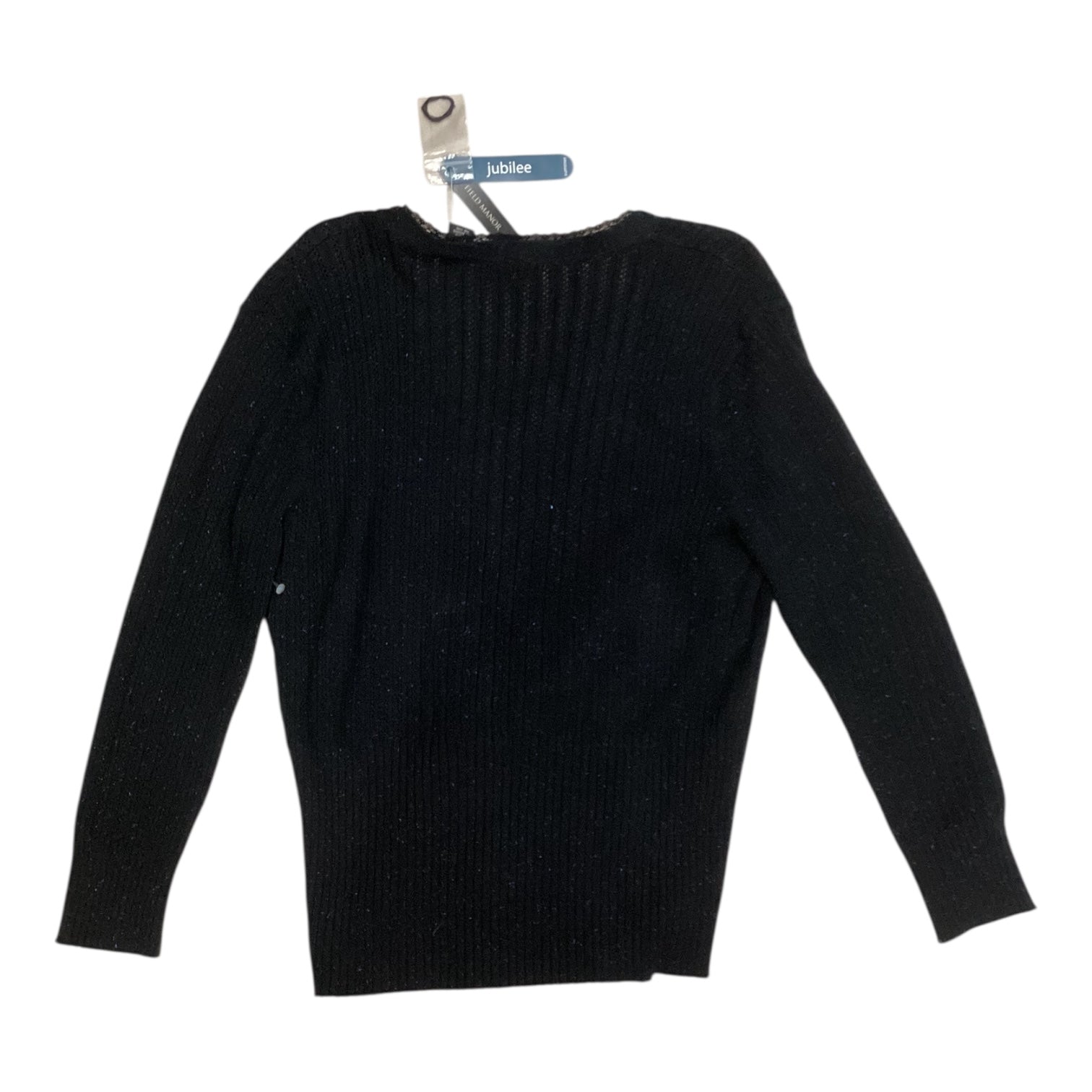 Indulge in the luxurious embrace of the Field Manor black cardigan, size L. Crafted with sumptuous fabric, this piece exudes elegance and sophistication.